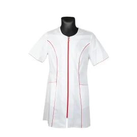 Fartuch medyczny damski biały na suwak Martex M-173C czerwona lamówka