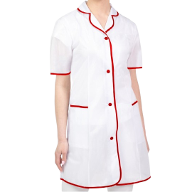 Fartuch ochronny damski M-092W biały czerwona lamówka