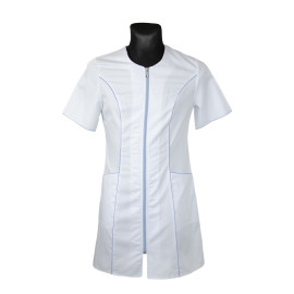 Fartuch medyczny damski biały na suwak Martex M-173C niebieska lamówka