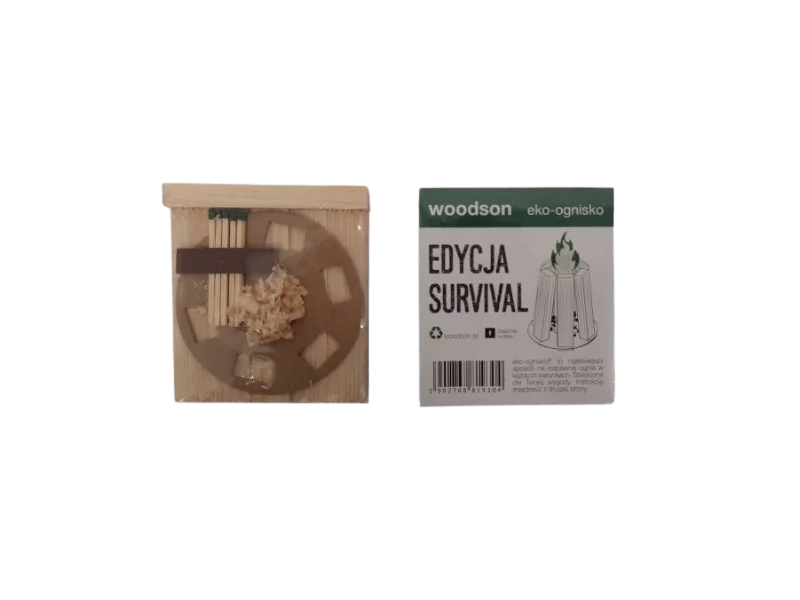Opakowanie zawiera 1 szt. eko ogniska do samodzielnego złożenia oraz 5 szt. zapałek z draską.