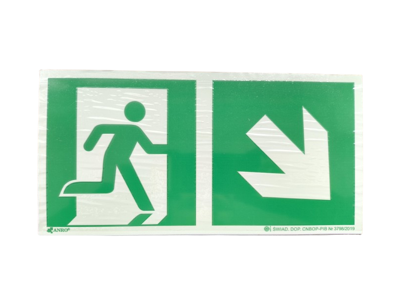 Znak Kierunek do wyjścia w prawo i w dół 150x300mm Anro