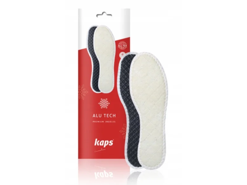Alu Tech to wielowarstwowe wkładki o miękkiej i ciepłej strukturze, z aluminiową izolacją termiczną. Ich wierzchnia warstwa wykonana jest z 100% wełny, zapewniając ciepło dla Twoich stóp. Folia aluminiowa skutecznie izoluje od zimnego podłoża oraz doskonale chroni stopy i wnętrze obuwia przed wilgocią. Dzięki zastosowaniu pianki lateksowej z węglem aktywnym, wkładki Alu Tech redukują nieprzyjemny zapach stóp. Wszystkie te warstwy zapewniają ciepło i komfort podczas chodzenia. Wkładki Alu Tech są idealne do butów na jesień i zimę, w tym obuwia z membranami, jak również do obuwia domowego.