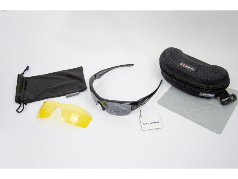 Zestaw zawiera: okulary polaryzacyjne, wymienne soczewki rozjaśniające policarbonowe żółte, etui, ściereczka, woreczek ochronny do przechowywania okularów