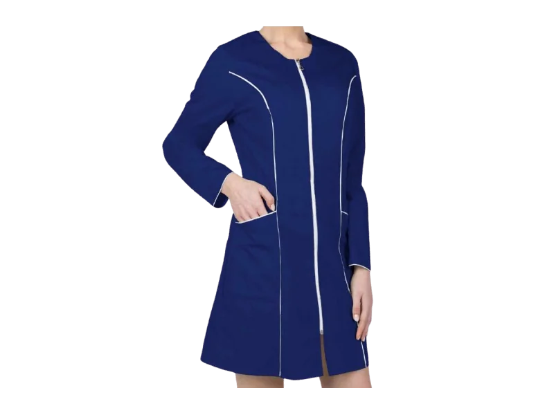 Fartuch medyczny damski na suwak długi rękaw szafir