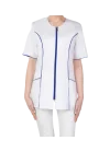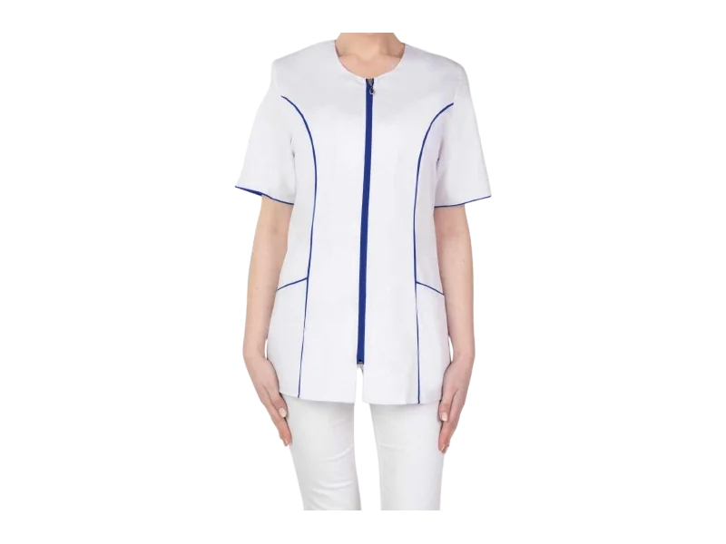 Fartuch medyczny damski na suwak biały + granatowa lamówka