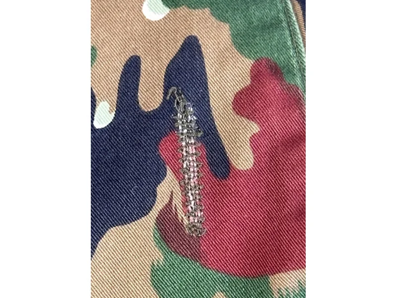 UŻYWANE - stan bardzo dobry, zacerowana dziurka w dwóch miejscach. Na wysokości pośladków 3,5 cm, na kieszeni 1,5 cm - szczegóły na zdjęciach.