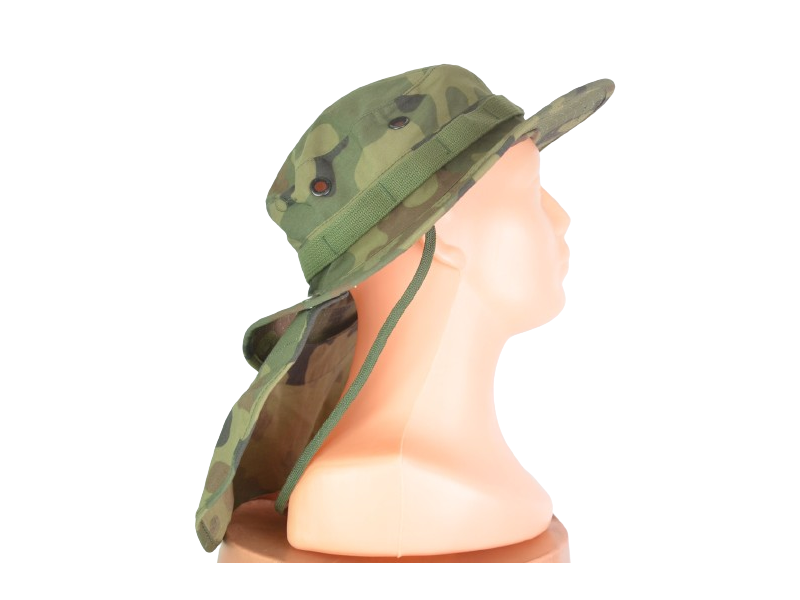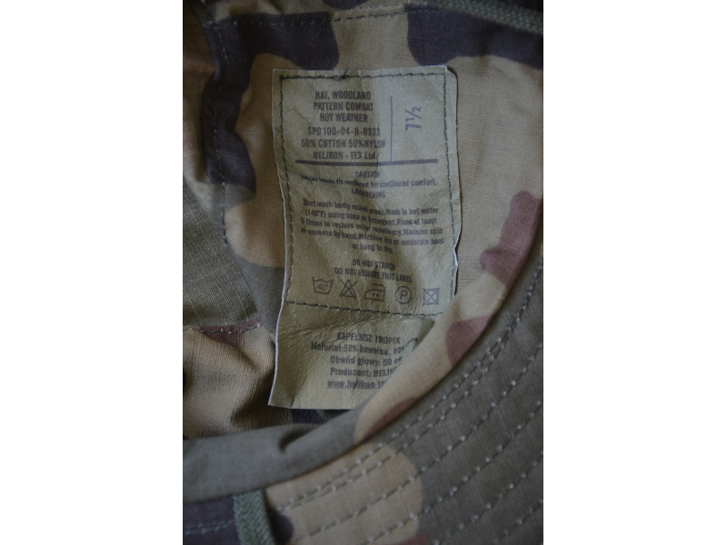 Kapelusz tropikalny wojskowy został wyposażony w cztery otwory wentylacyjne z kratką zabezpieczającą przed dostaniem się insektów.