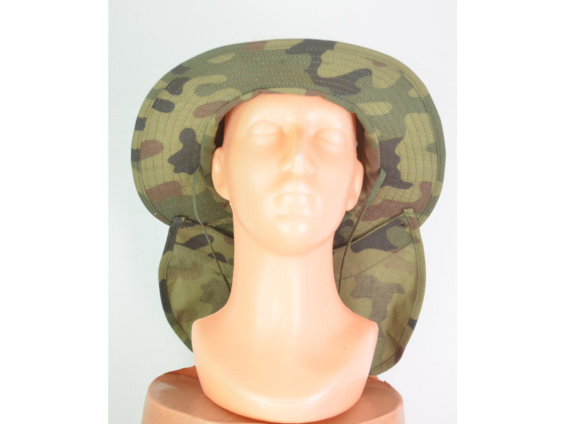 Kapelusz wyposażony jest w odpinaną osłonę przeciwsłoneczną na kark.