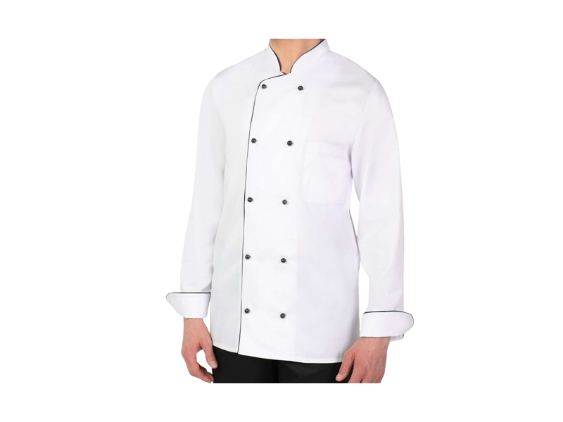 Bluza gastronomiczna dwurzędowa, zapinana na profesjonalne guziki z długim rękawem oraz mankietami. Odzież gastronomiczna w profesjonalnym wydaniu.