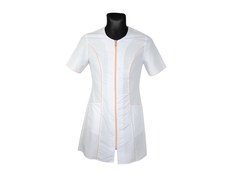 Fartuch medyczny damski na suwak biały + morelowa lamówka
