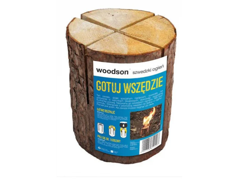 Szwedzki ogień to wygodna w użyciu polowa kuchenka. Dzięki specjalnym nacięciom pieniek pali się od środka jak naturalne ognisko. Foliowe opakowanie umożliwia łatwy transport i przenoszenie. Szwedzki ogień to idealne rozwiązanie dla osób spędzających czas nad jeziorem, na plaży, działce, a także dla wędkarzy chcących zagotować wodę lub podgrzać posiłek.