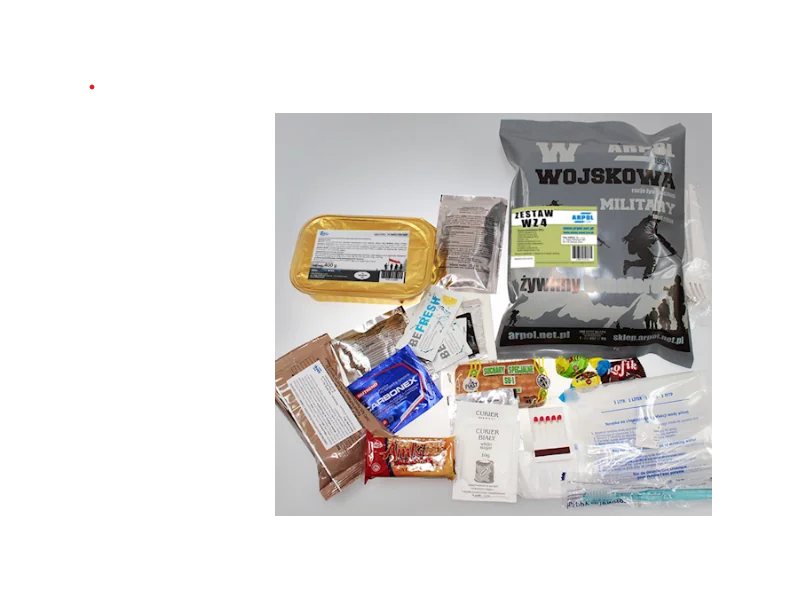 Racja żywnościowa z posiłkiem podgrzewanym przy użyciu bezpłomieniowego podgrzewacza chemicznego.