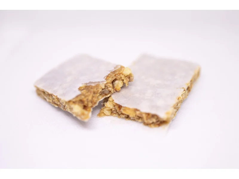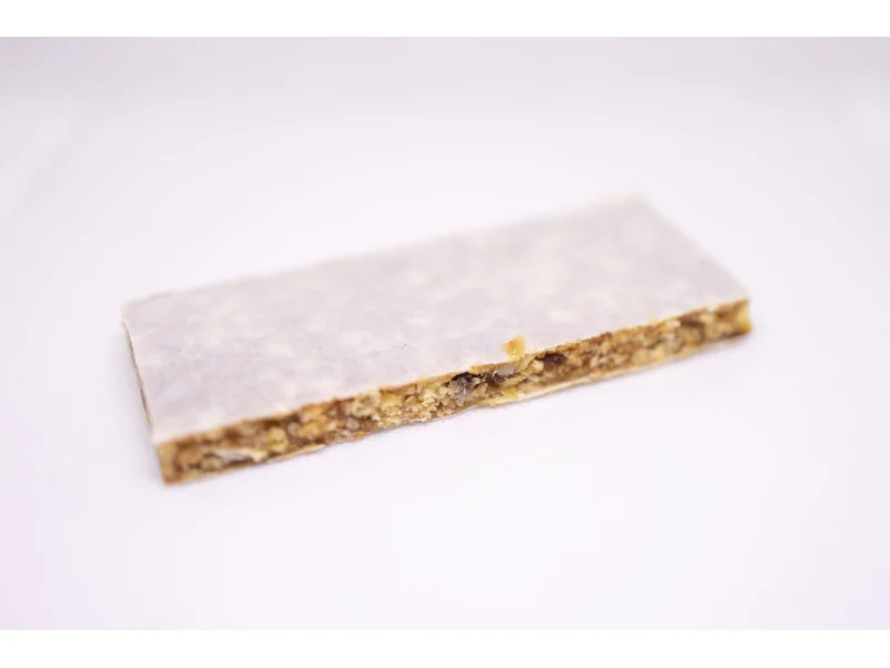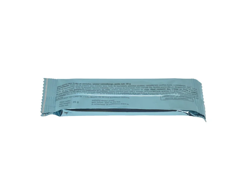 Składniki: owoce - 45% [rodzynki (rodzynki, olej słonecznikowy), suszone jabłka, żurawina kandyzowana - 8,5 % (żurawian - 55%, cukier, przeciwutleniacz: kwas cytrynowy, koncentrat soku z bzu czarnego, olej słonecznikowy)], syrop skrobiowy, płatki owsiane - 10%,ziarna słonecznika, kukurydza ekstrudowana - 7%, wafel (skrobia ziemniaczana, woda, oliwa z oliwek), tłuszcz palmowy, grysik sojowy, aromat, emulgator – lecytyny (z soi).