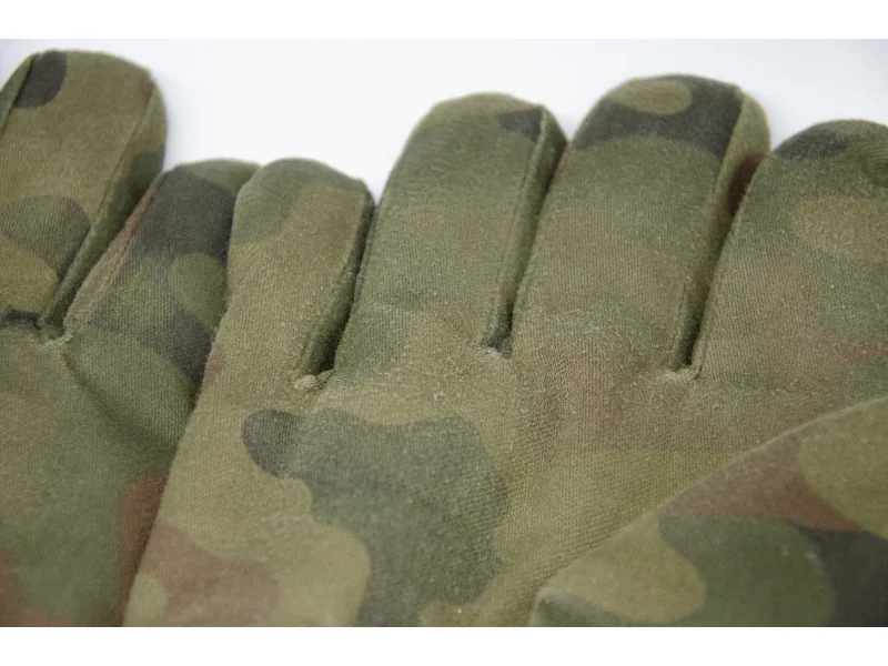 Rękawice 5-palczaste składające się z trzech warstw: tkaniny zasadniczej, ocieplenia (watolina) i flaneli.