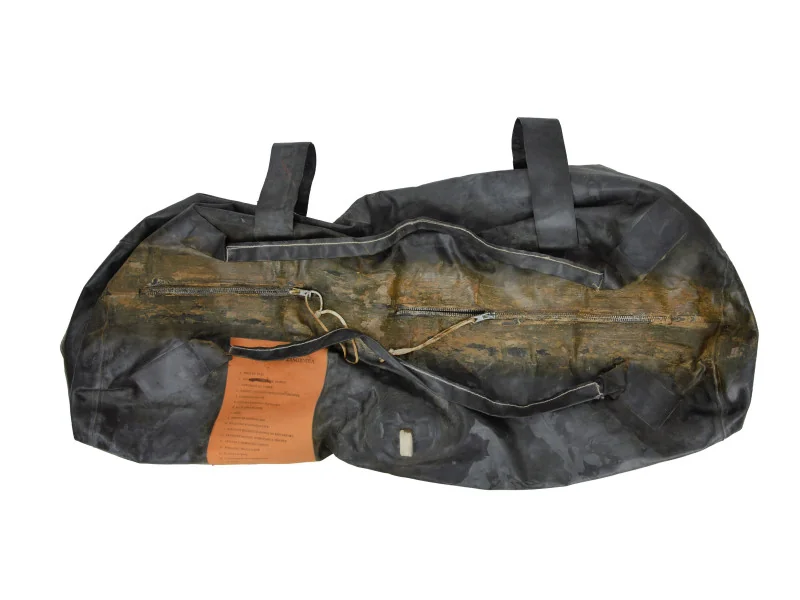 Oryginalny wojskowy zasobnik ratunkowy (survivalowy) z okresu PRL, wykonany z materiału gumowanego.
