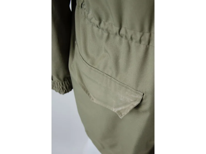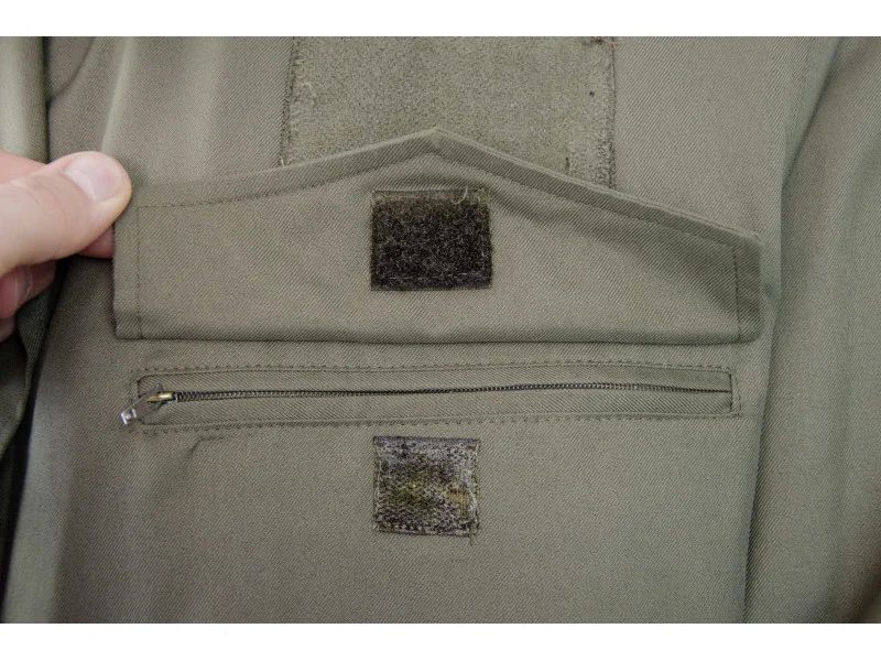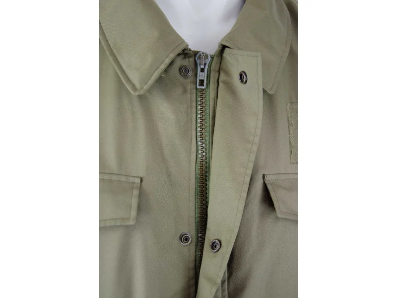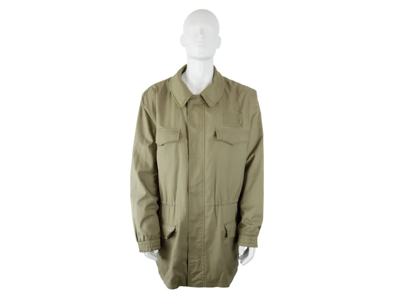 Kurtka służb mundurowych w kolorze oliwkowym/khaki, wykonana z wytrzymałej tkaniny. Model o klasycznym kroju użytkowym, przeznaczony do pracy w terenie lub codziennego użytkowania w służbach. Kurtka zapinana na zamek błyskawiczny, dodatkowo osłonięty listwą zapinaną na napy, co zapewnia lepszą ochronę przed wiatrem.