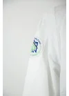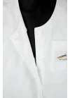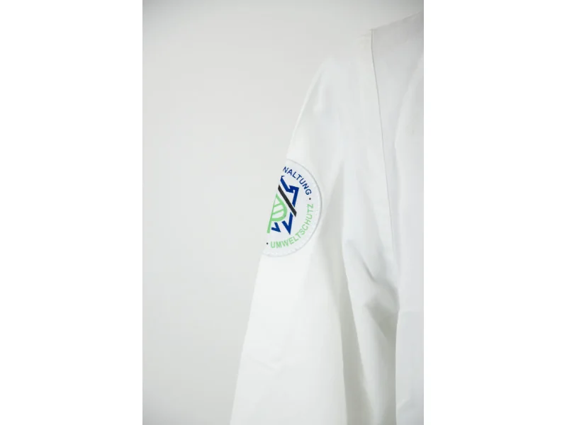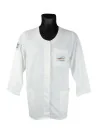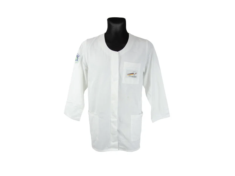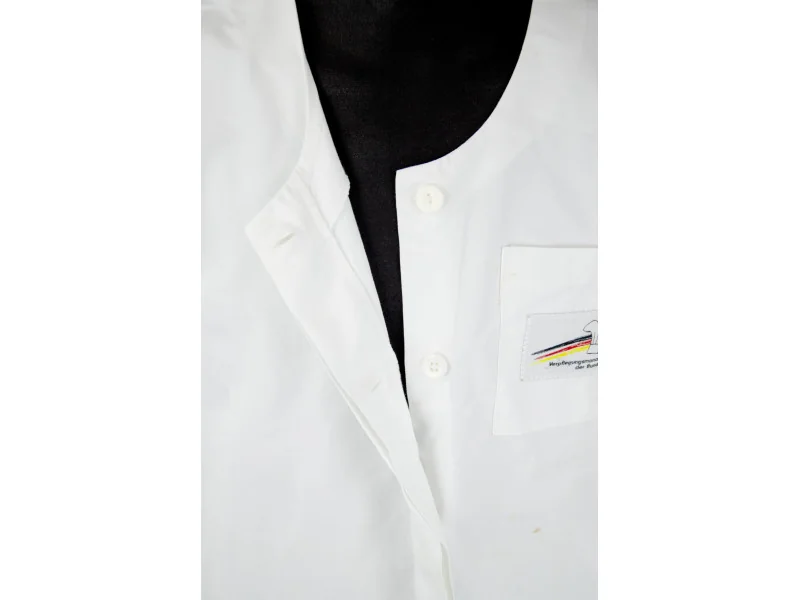 Model wykonany z wytrzymałej, lekkiej tkaniny w kolorze białym, przeznaczony do pracy w kuchni wojskowej i zapleczu gastronomicznym.