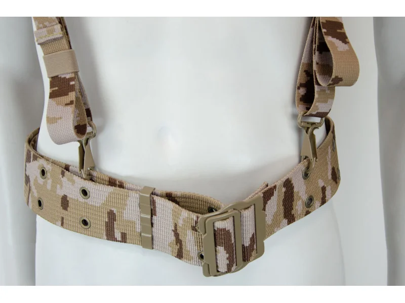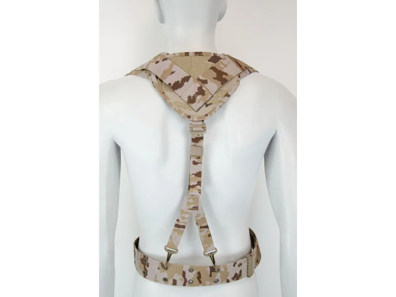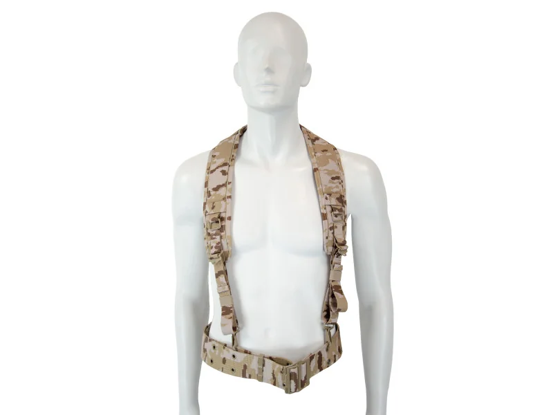 Szelki z pasem taktycznym do oporządzenia w układzie Y - dobrze rozkładają ciężar i odciążają pas biodrowy.